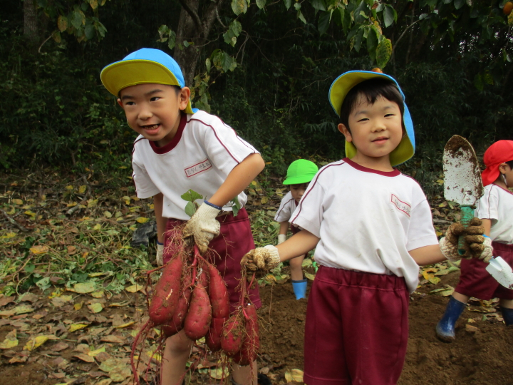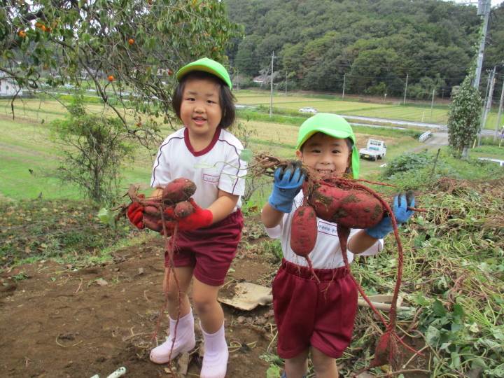 6月に年長児が植えたさつまいもの苗が、暑い夏を越して大きく育ちました。ぱんだ組ぞう組きりん組の子どもたちが、がんばってたくさん掘ってきてくれました。今年は軽トラックがいっぱいになるくらいの大収穫でした。給食や子どもたちのさつまいもクッキングで使用したり、全園児のお土産として持ち帰っていただきました。
