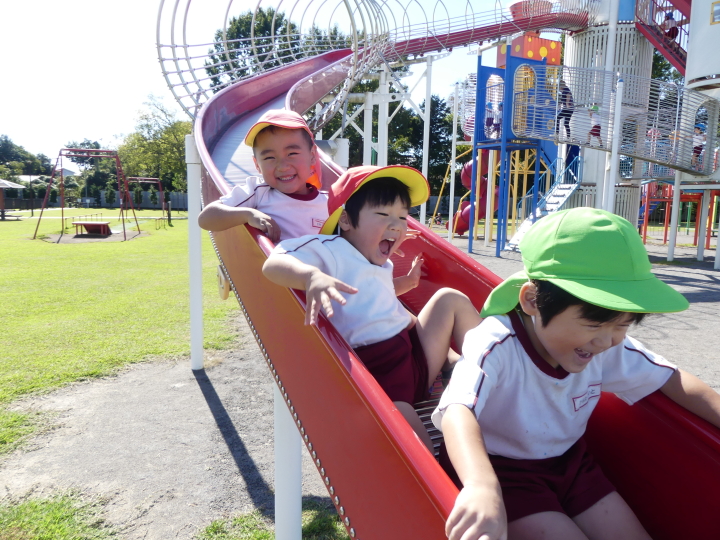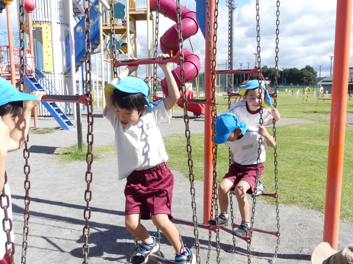 昨日の雨がスッキリあがって絶好の遠足日和となりました。子どもたちは広い公園のたくさんの遊具でおもいっきりあそんできました。その後、お楽しみのSLに乗って茂木駅まで帰ってきました。SLの時間の都合でいつもより遅い昼食になりましたが、その分おいしいお弁当をあっという間に食べる姿も見られました。