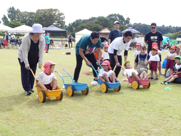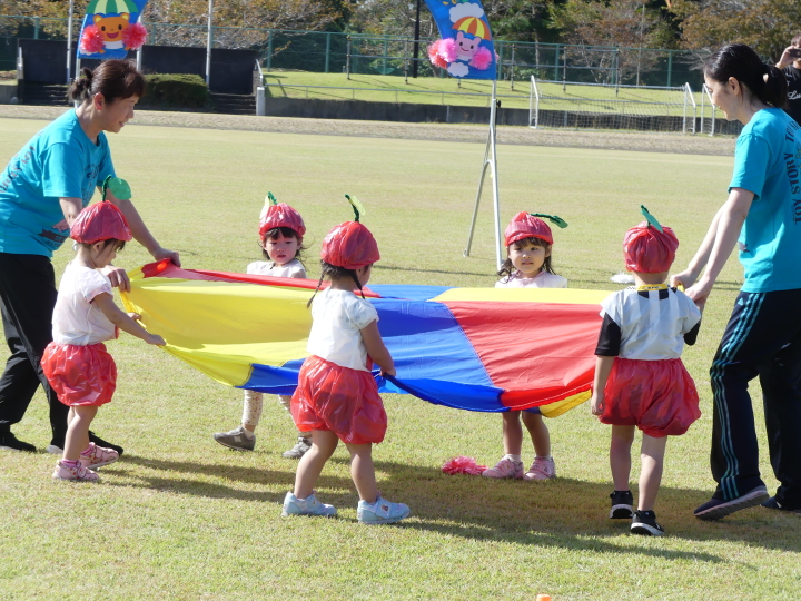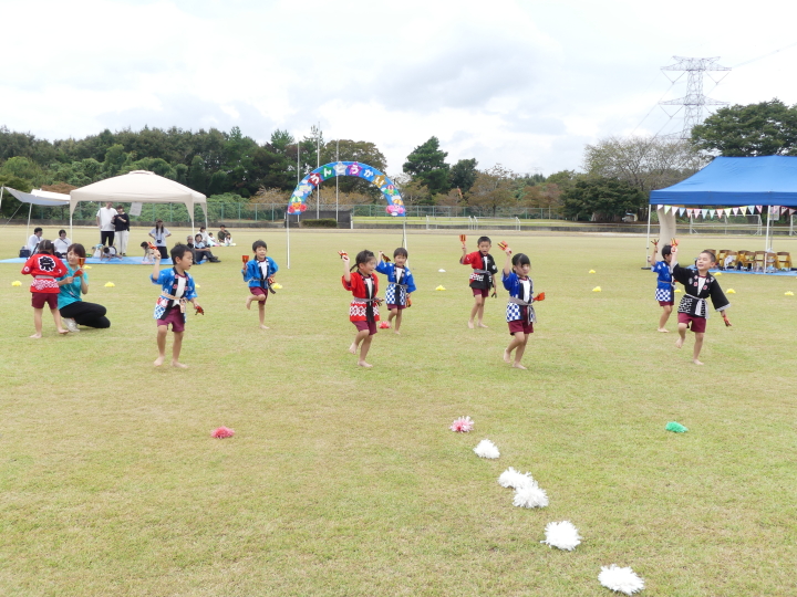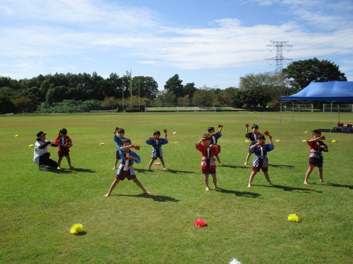 残暑が厳しい中、思うように園庭で練習ができませんでしたが、これまで子どもたちはそれぞれに練習をがんばってきました。今日は広いグラウンドで大きな声を出して、力いっぱい走ったりおどったりすることができました。子どもたちはこのような大きな行事を経験することで、ひとまわりもふたまわりも大きく成長することでしょう。
