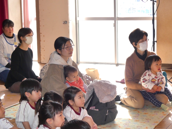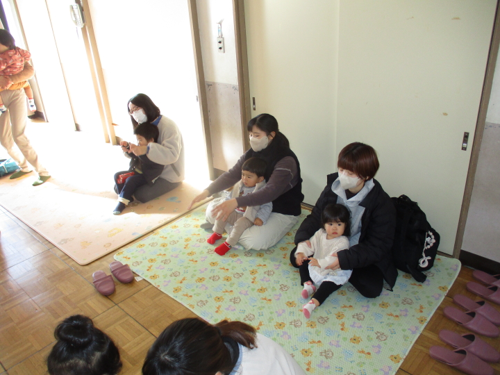 保育園のお友だちがうたってくれた歌をきいたり、みんなで園長先生にお菓子をもらいに行ったりと楽しく過ごしました。